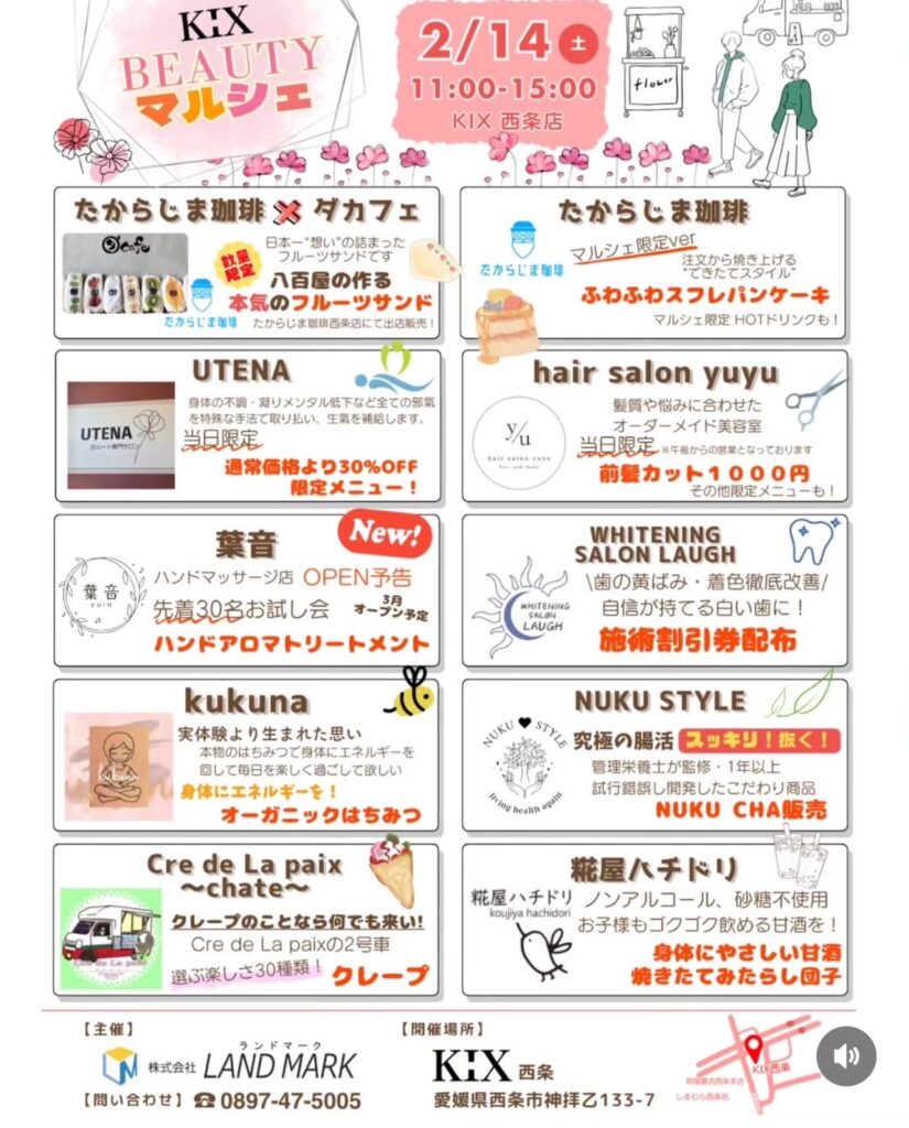 愛媛県西条市にて、美容と食を楽しむ新しいイベント「第1回 KIX BEAUTY マルシェ」が開催されます!